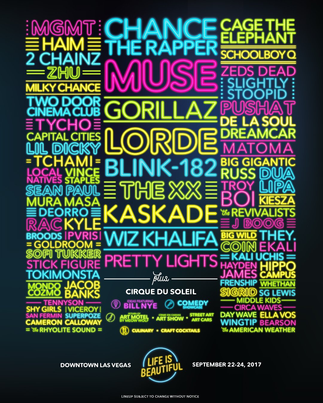 The festival will be an entertainment showcase featuring music, food, & art, but at its core, l.i.b. Whether you are being nostalgic for life is beautiful festivals of past years, or curious what type of music the festival provides yearly, it's always nice to see the official lineup posters from years past. Untitled, 2013 | las vegas.