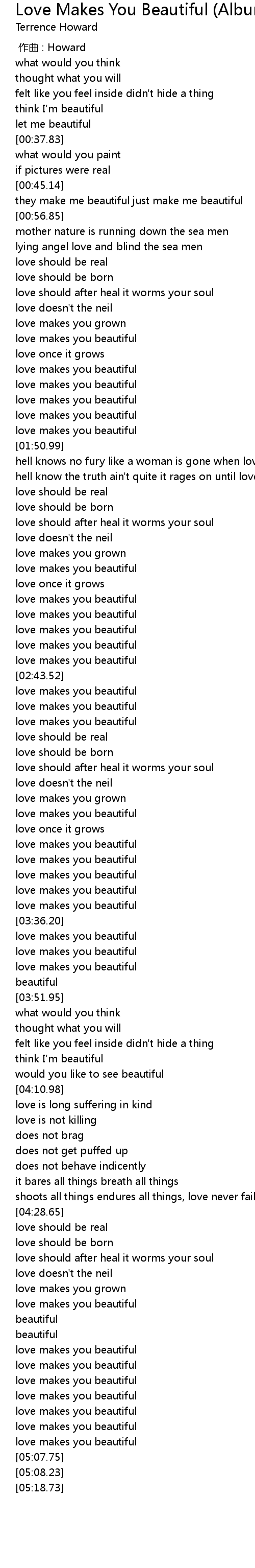Faithful love (faithful love) from above (from above) came to earth to show the father's love. He explained to sugar magazine, one morning when i was going to the studio, she was like 'ugh, i look so ugly today' and i was like 'no!'.my wife's this beautiful swedish girl, and the 'you don't know you're beautiful, that's what makes you beautiful' line popped into my head. His love makes me beautiful lyrics soundtrack: